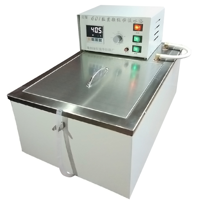 产品介绍 宏华 HH-601 数显恒温水浴锅是一款更新换代的高性能产品,采用进口不锈钢板及专业工艺生产,各项技术指标达到国家标准。具备微机智能控制系统、触摸软键、LED数显温度测量和设定值、控温精度高、耐腐蚀性强、结构紧凑、美观耐用等特点。适用于实验科学领域的生物、物理、植物、化工、医疗、环保等多个领域,控温范围为RT+5~95℃,工作槽容积11L,是实验室中辅助加热的精密产品的可靠选择。 HH-601超级恒温水浴是采用进口不锈钢板及专业的工艺生产制造,各项技术指标均达到国家标准,是恒温水浴的更新换代产品。设有循环泵,可把槽内被恒温液体外引,建立**恒温场,还可作为热源源,把槽内液体引到机外实验容器。 HH-601超级恒温水浴温控采用微机智能控制系统。 触摸软键快速设定温度,操作方便。上窗口LED数显温度测量值,下窗口LED数显温度设定值。微机修正温度测量值偏差,数显分辨率0.1℃。 HH-601超级恒温水浴具有控温精度高,耐腐蚀性强,结构紧凑,造型美观,节省能源,使用寿命长等优点,选用于生物,物理、植物、化工、环保等实验科学领域或辅助加热的精密产品。 结构 HH-601超级恒温水浴外壳采用金属板,控制箱直接安装在水箱上。旁边有冷凝水管进出水嘴两只,水箱内采用进口水泵作为循环动力,解决了温水不匀的弊病,使仪器的控温精度和水的均匀度都能达到较高的要求。